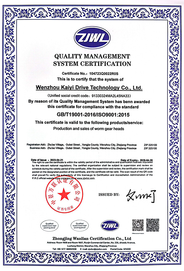 質(zhì)量管理體系認(rèn)證證書